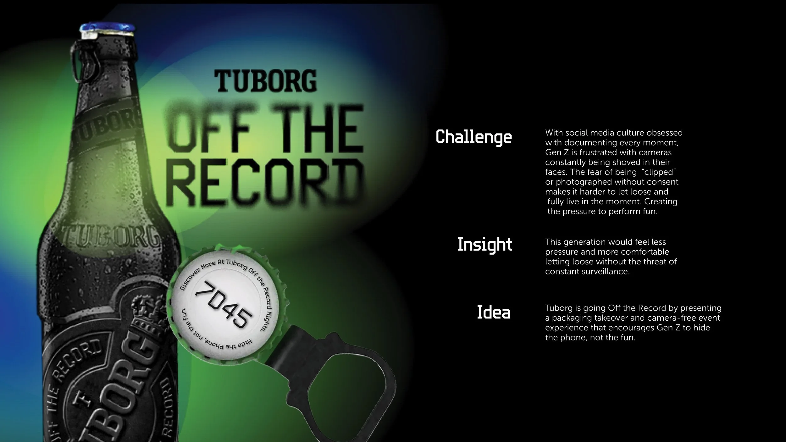 With phones in their faces and cameras flashing, everyone’s feeling the pressure of constant surveillance. So, Tuborg’s going off the record.